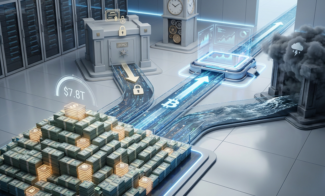 Seven point eight trillion dollars. Just sitting there. Earning yield, rolling over, going nowhere. And crypto Twitter is absolutely losing its mind about it.