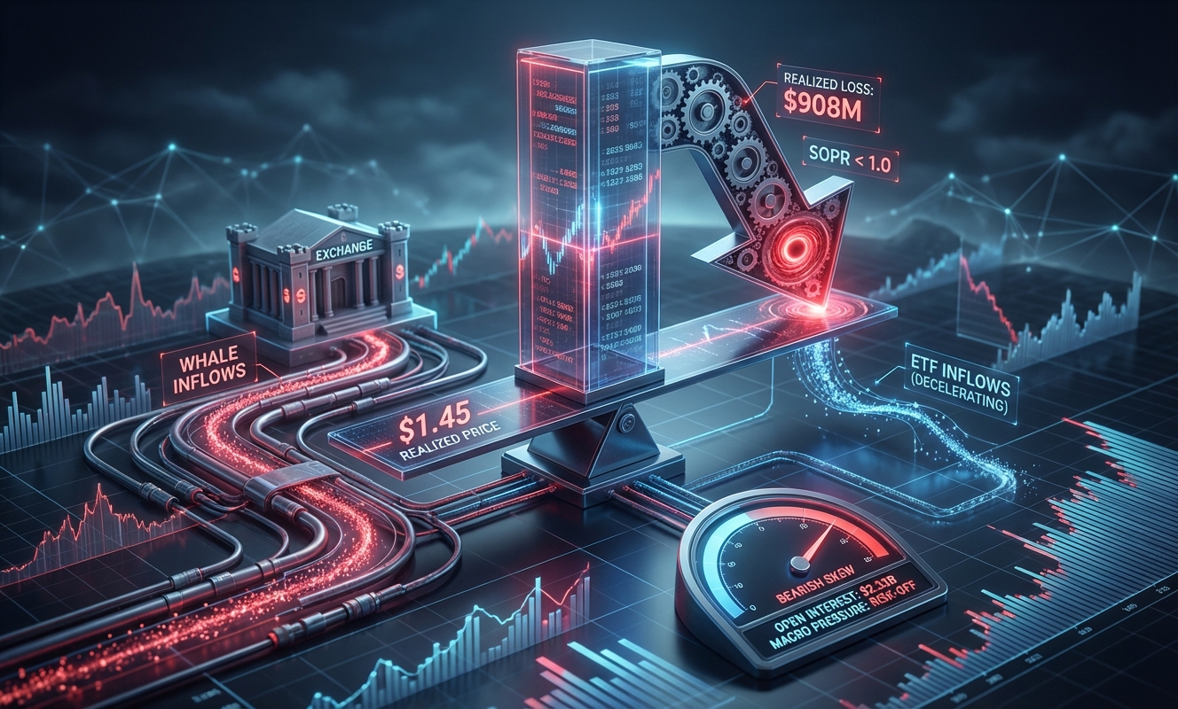 • SOPR around 0.98. On-chain coins are being sold at a loss on average. When SOPR stays below 1.0 for an extended period, it doesn’t signal a confident rotation into stronger hands. It signals stress selling.